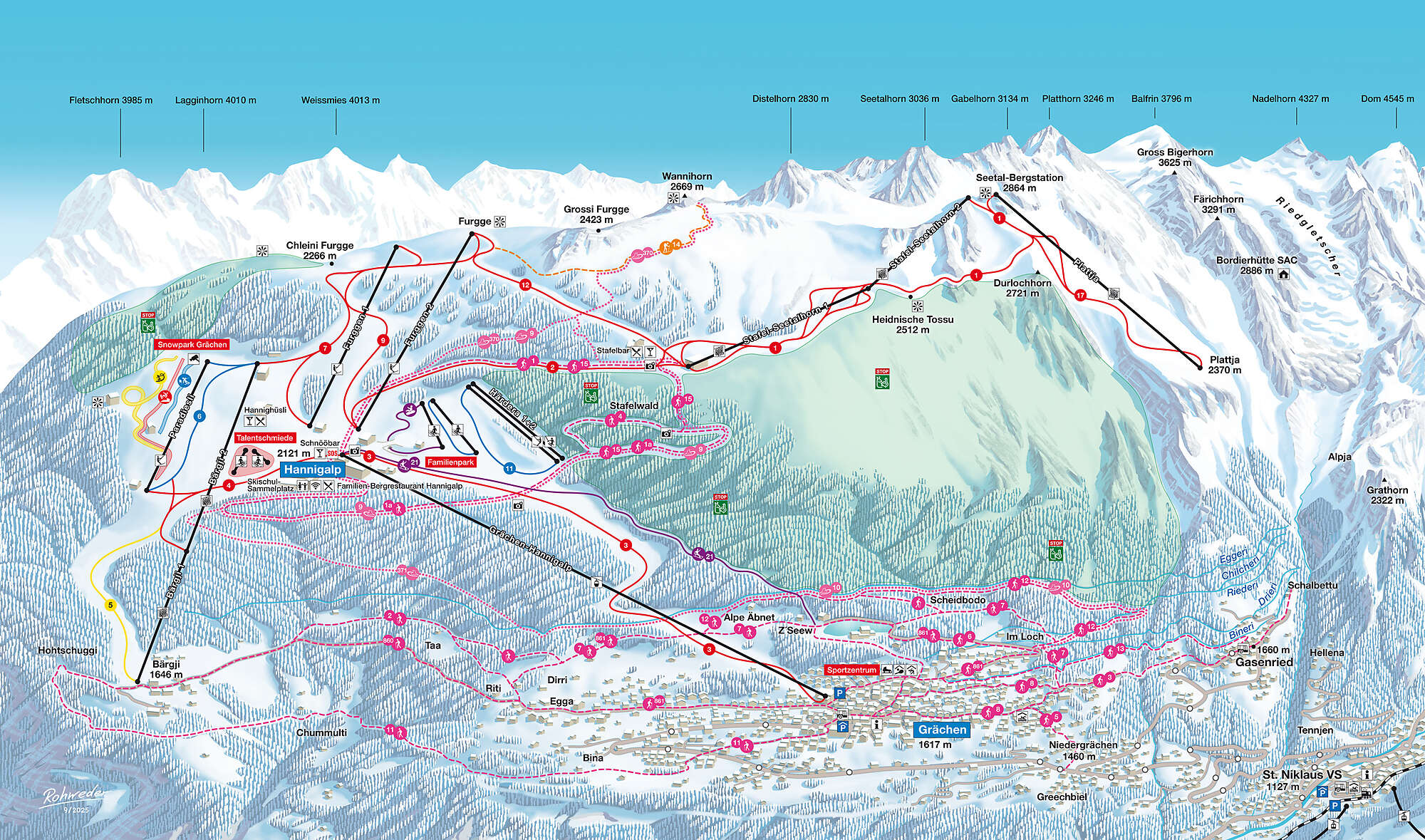 Grächen is a popular winter wonderland for all snow sports enthusiasts. Treat yourself to some time out and enjoy the beauty of the magnificent Valais mountains. Look forward to ideally groomed slopes, cool fun parks and the snow fun of your dreams for young and old. In the manageable sunny mountain village, almost every holiday programme point is within easy walking distance - for winter holidays with serenity. And one thing is for sure: you will also have a lot of fun and enjoy good entertainment.