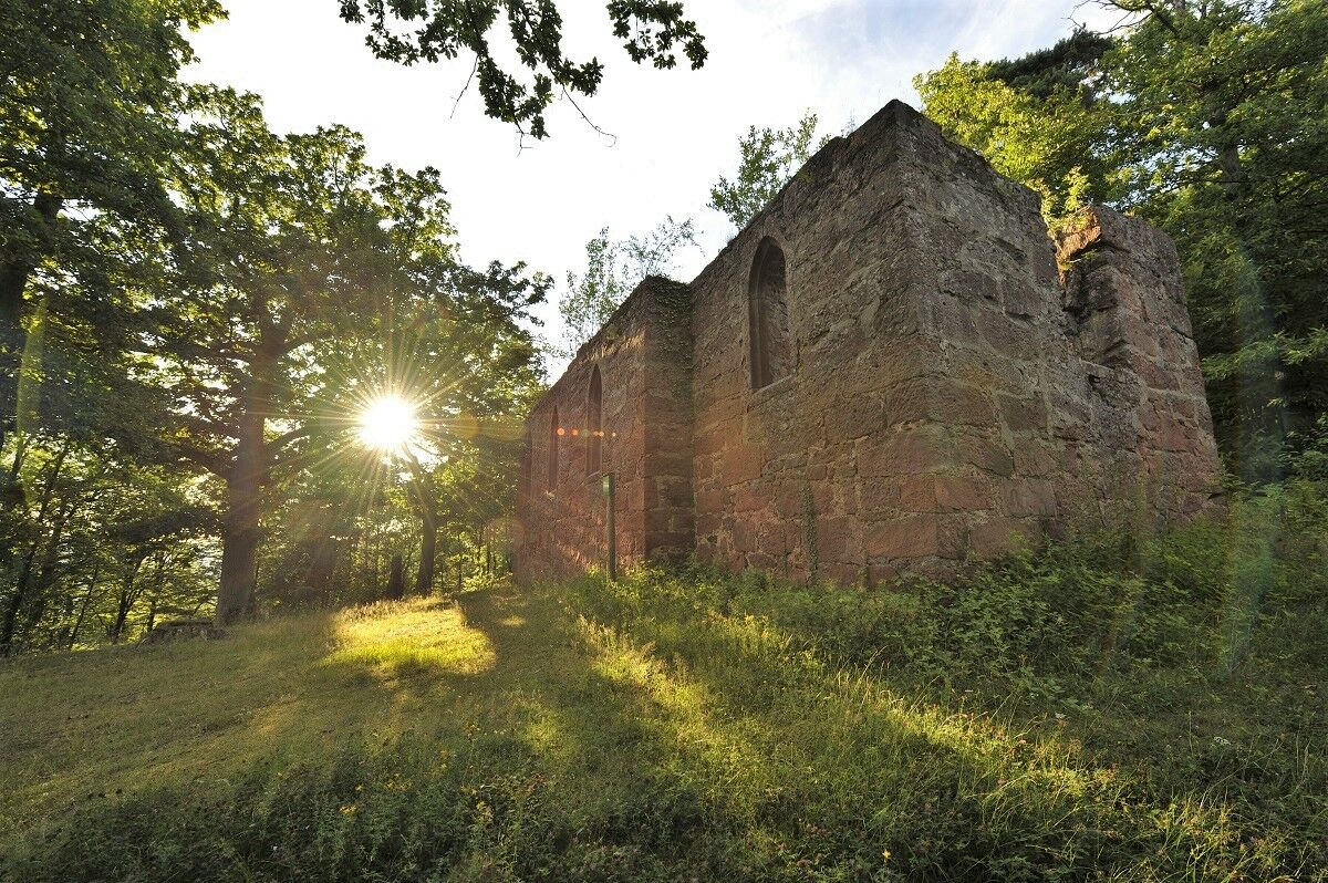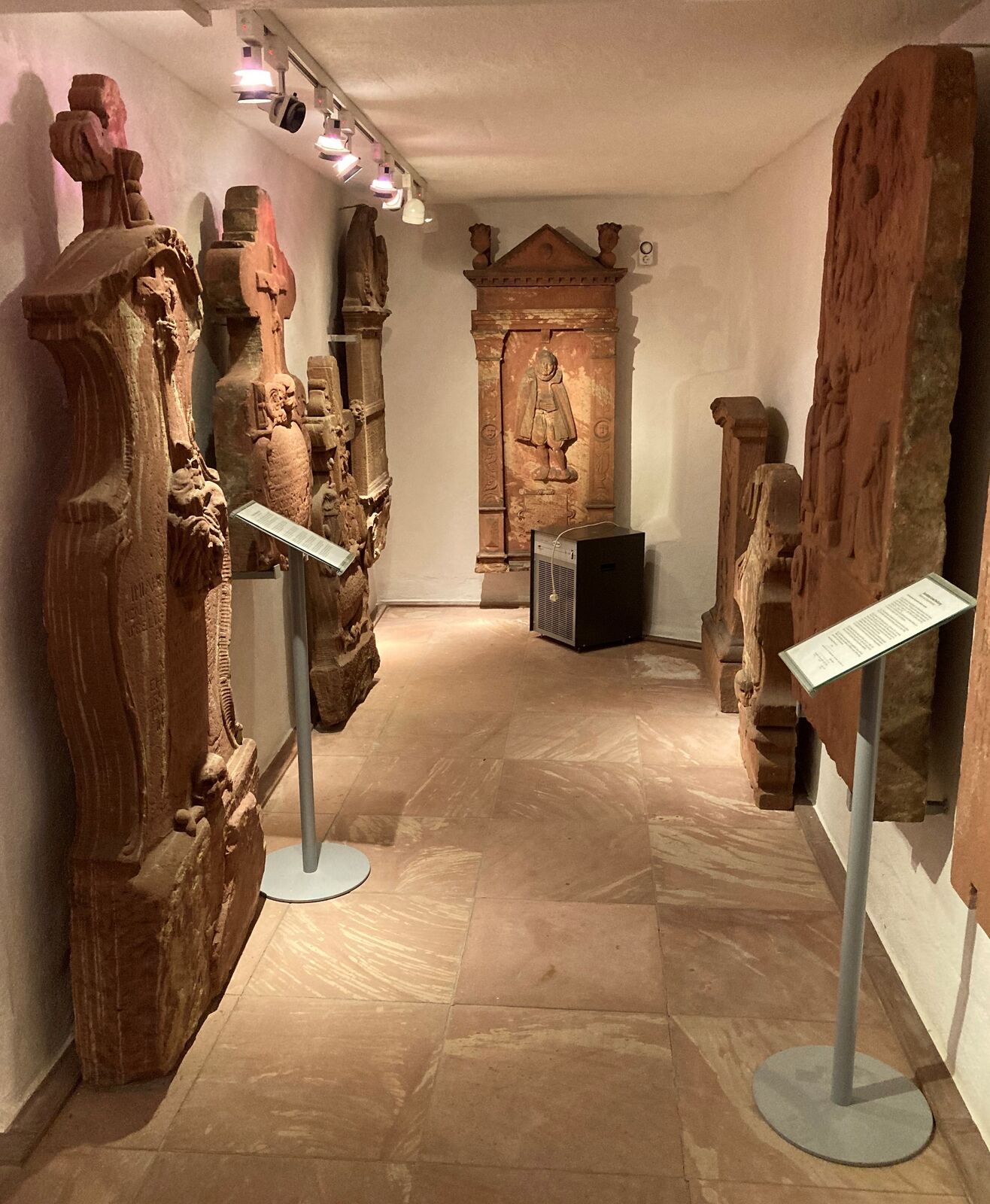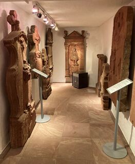 Wenige Schritte weiter wartet die 950 errichtete Martinskapelle, die Pfarrkirche der „Urpfarrei“ Bürgstadt war. Die Wandmalereien im Innern lohnen einen geführten Besuch. Bergwärts erreichen wir die neue Pfarrkirche mit dem Friedhof, der einige kunstvolle Grabmale aus Sandstein aufzuweisen hat. Der Weg überquert die Erf und dann wartet mit dem Museum in der Mittelmühle die nächste Station. Gerade zum Sandstein ist dort eine umfassende Ausstellung in mehreren Etagen aufgebaut.