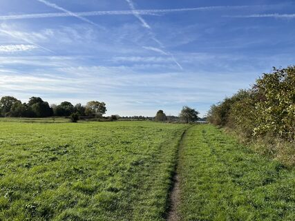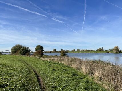 Hinweg einige Zeit Trampelpfad, dann landwirtschaftlicher Weg, kirzes Stück Strasse auf dem Deich (wenig Verkehr) und wieder Feldweg/Trampelpfad, teilweise Zäune/Weide. Zurück ausschließlich Straße.