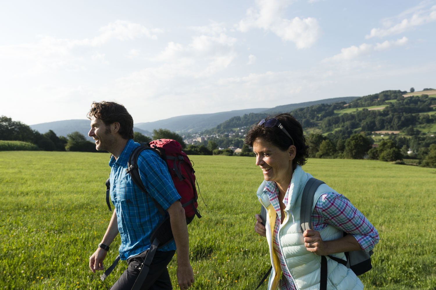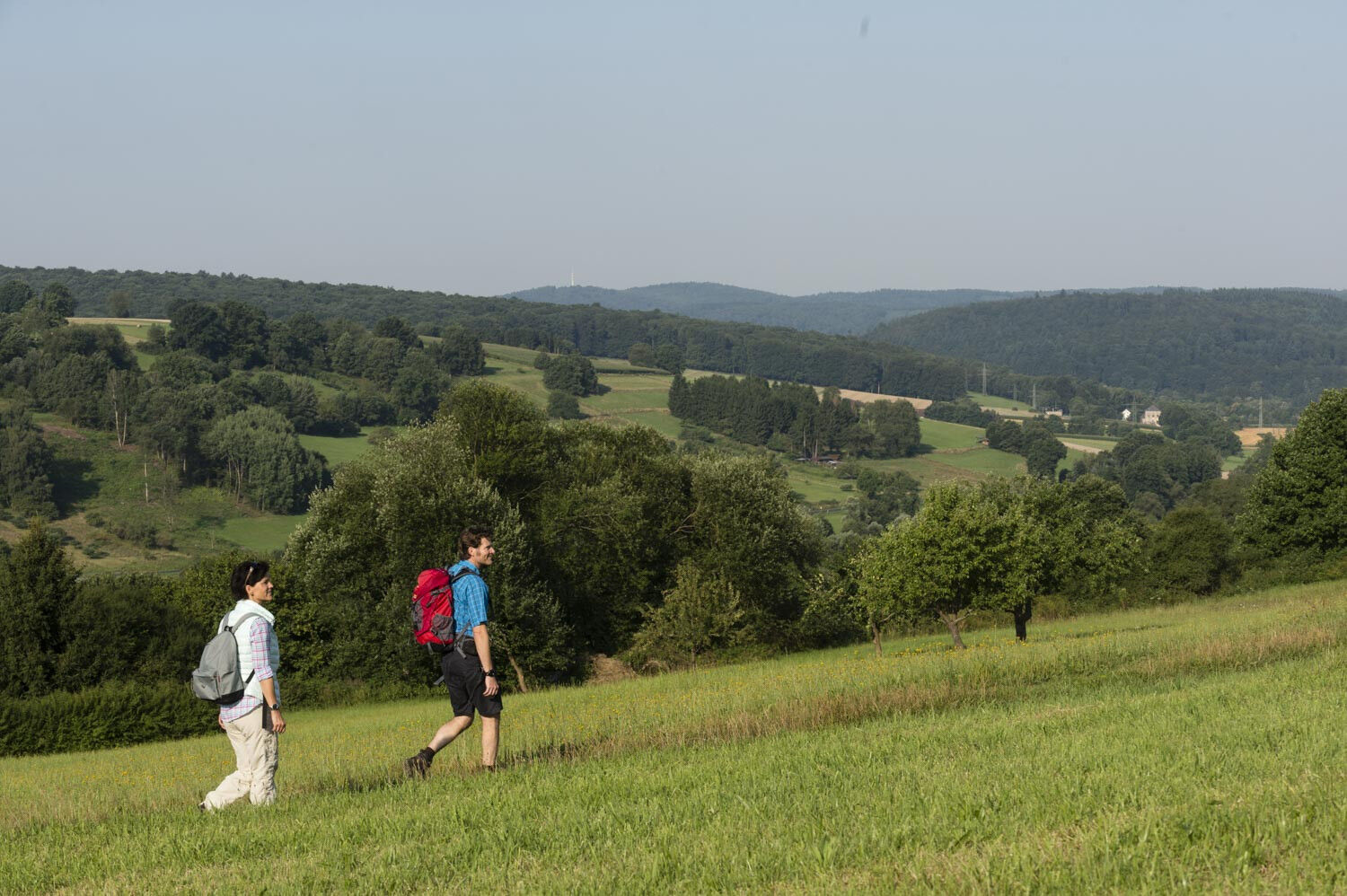 Unsere Tour beginnt am Parkplatz "Dreiländereck" und führt uns zunächst leicht bergab zur "Aufenauer Höhe". Hier angekommen, bietet sich ein Abstecher zur nahegelegenen "Milchhütte" auf dem Hof Sonnenberg an. Bei einem Glas Milch oder selbstgemachtem Eis genießen wir auf den Ruhebänken den herrlichen Blick auf die Kurstadt bis in das Orbtal. Gut gestärkt treten wir den Rückweg auf schmalen Waldwegen durch Feld und Flur an.