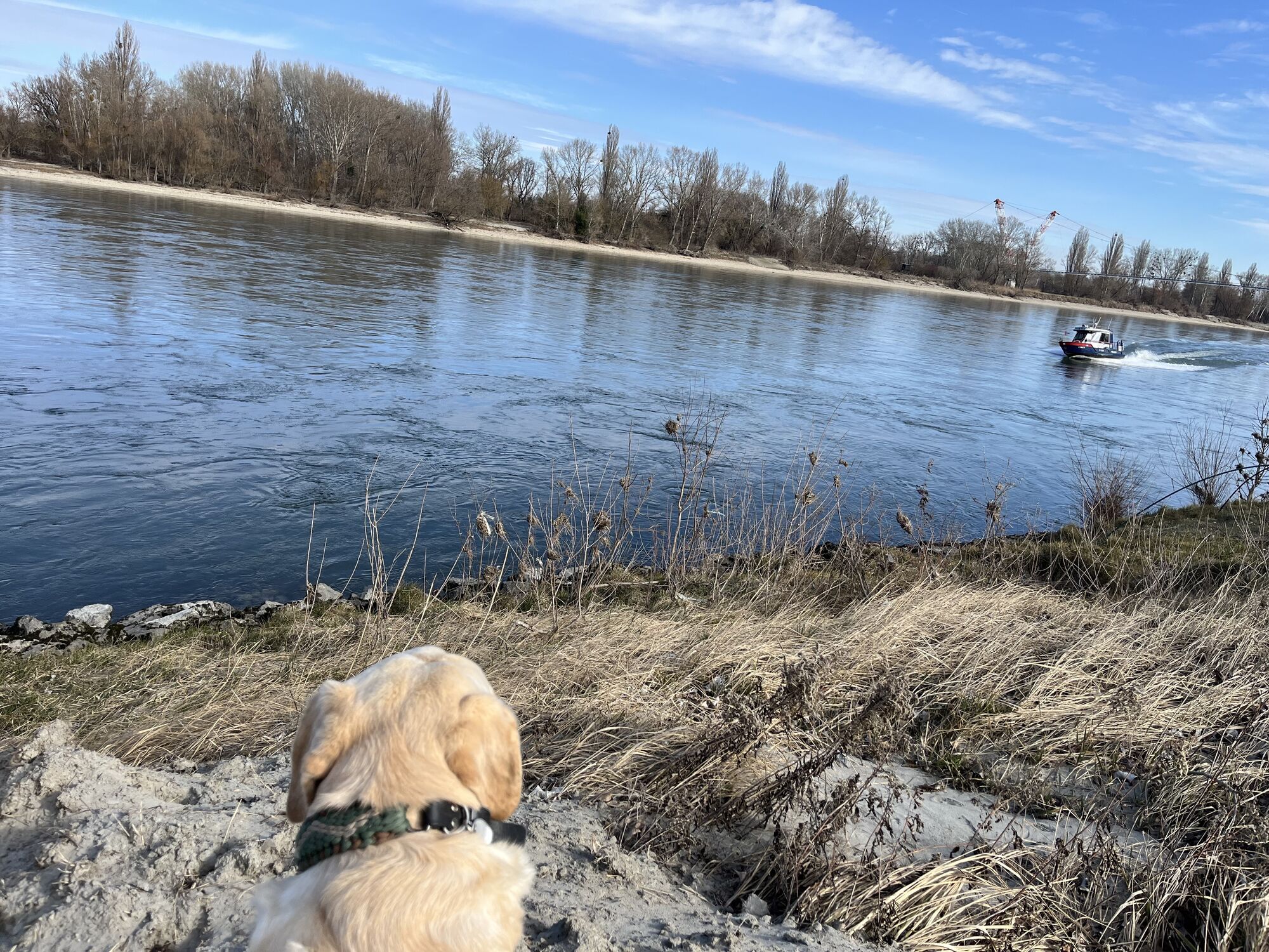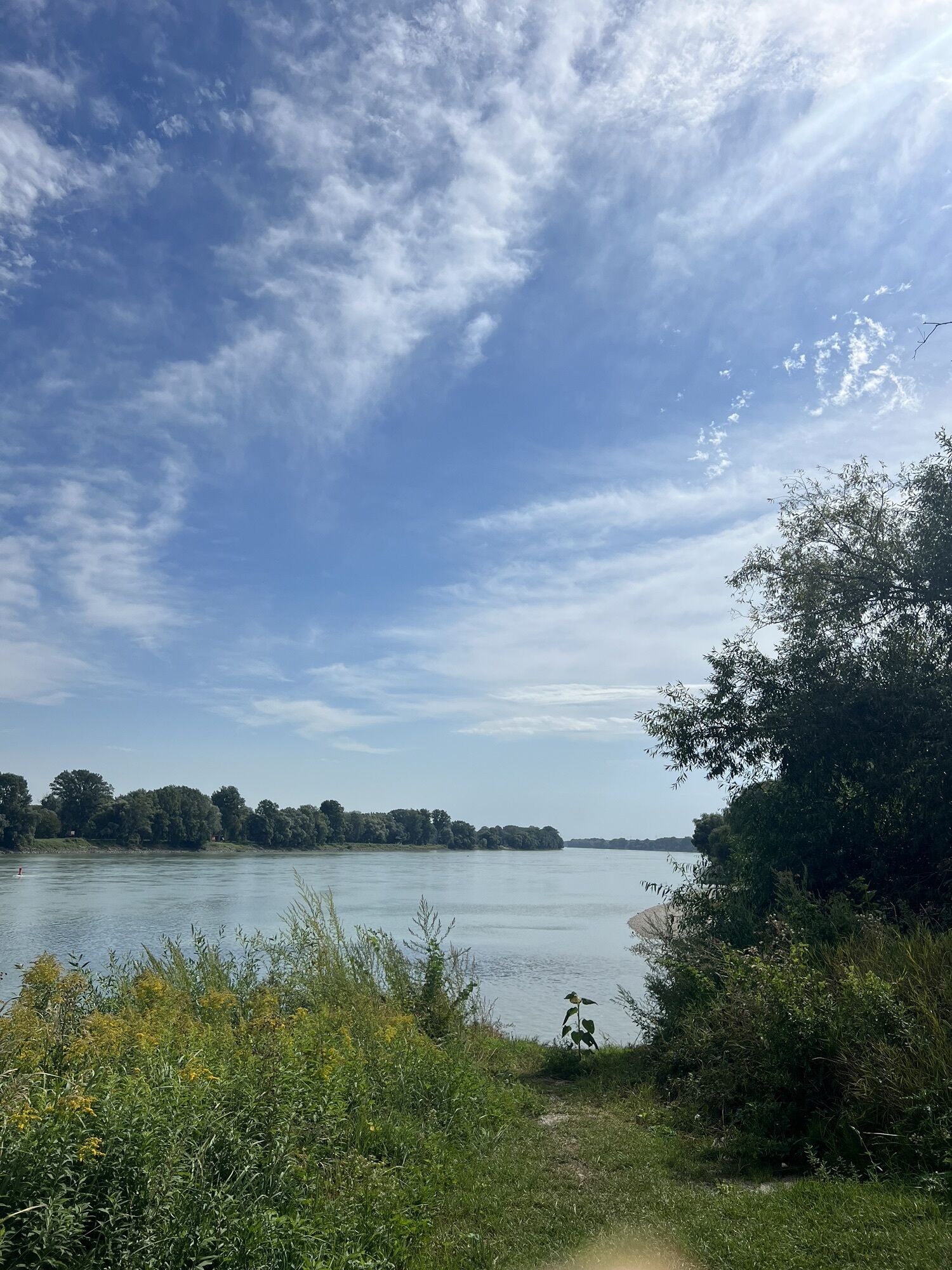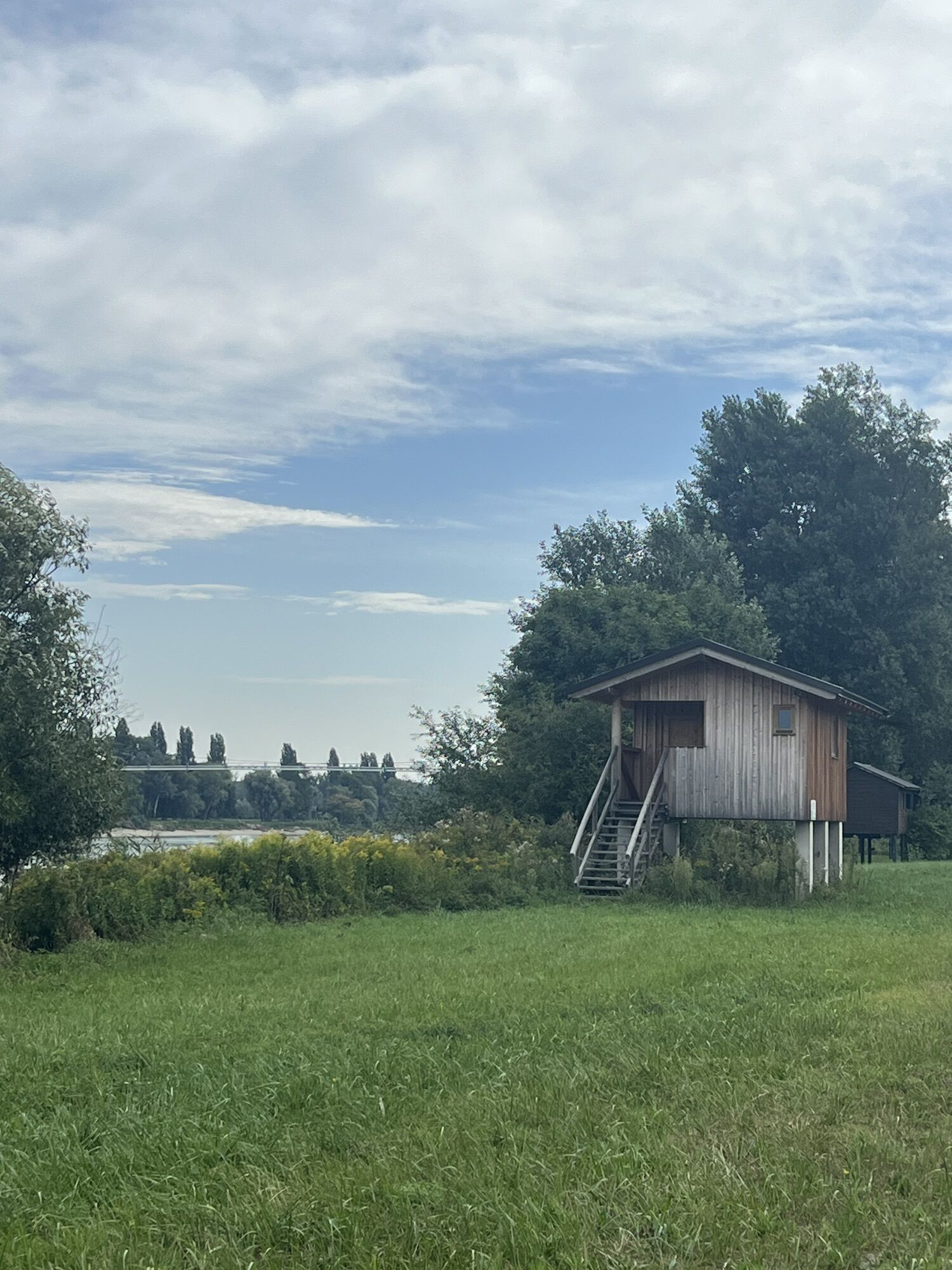 Ebener Spaziergang entlang der Fischerhütten und Hochwasserdamm.