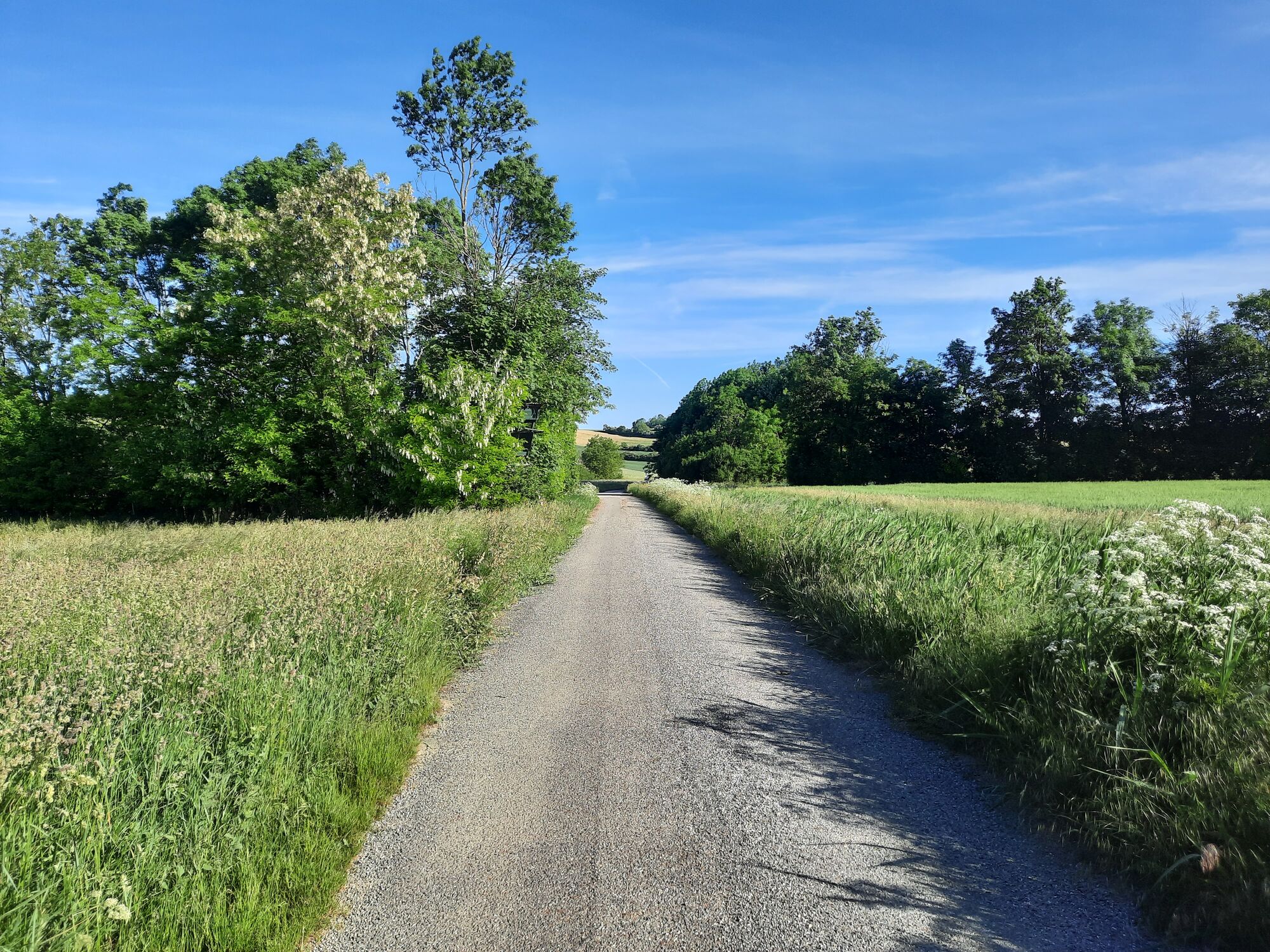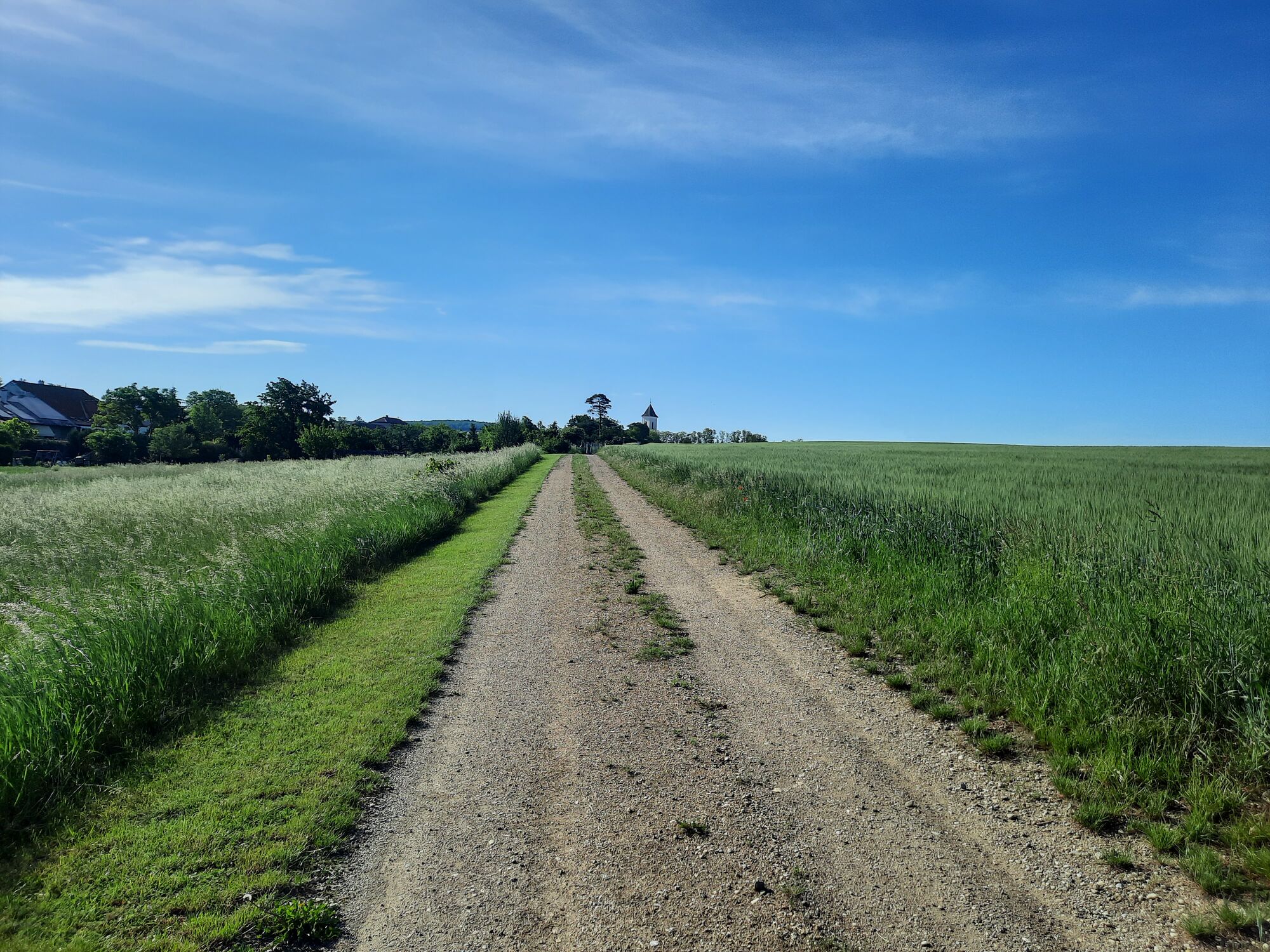 Streckenverlauf: über die Kellergasse und Siedlung am Weinberg rechts ins Ortsgebiet von Gaubitsch Richtung Ortsende und zum Güterweg neben Haus Nr. 159 (Radweg) – durch Wiesen und Felder Richtung Kleinbaumgarten...