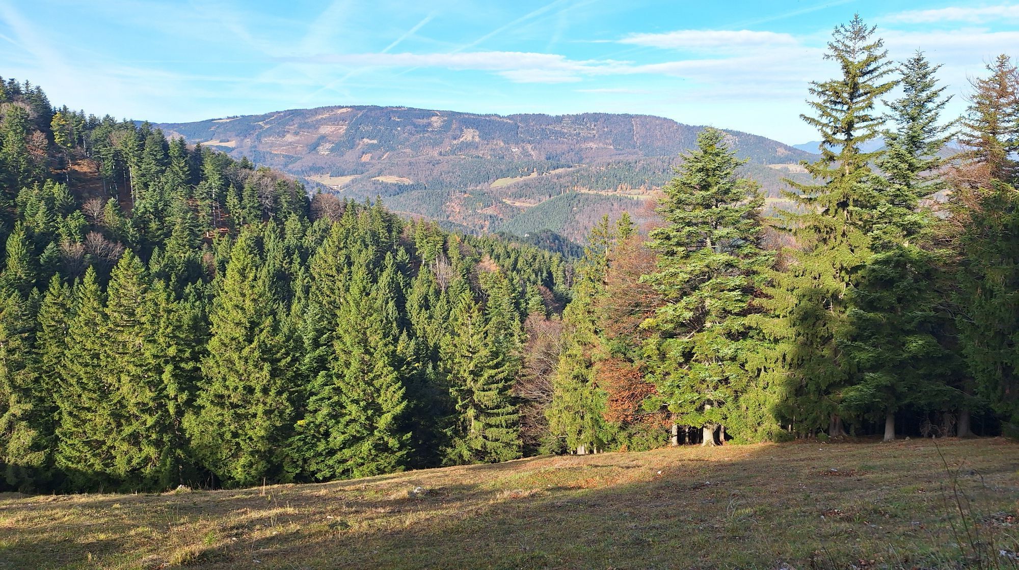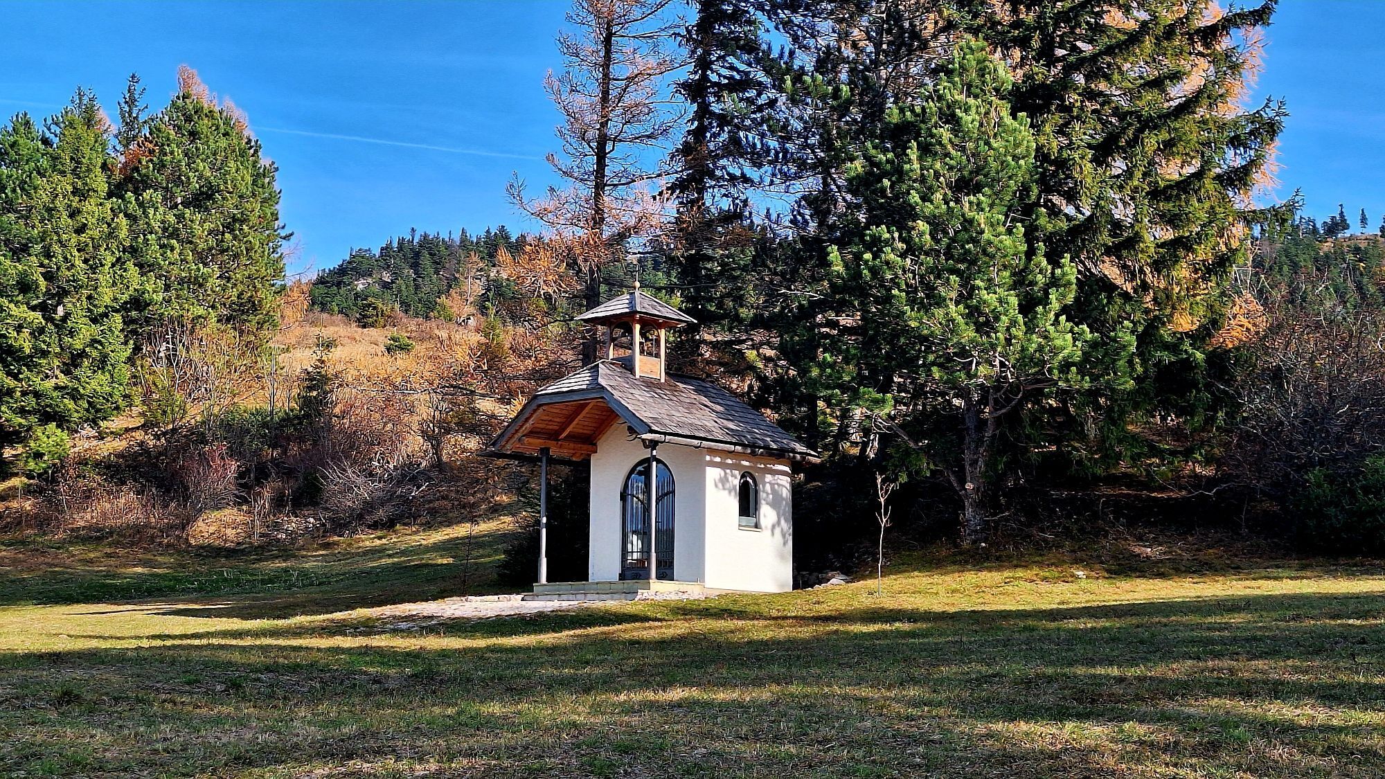 From the starting point, we follow the wide forest road that takes us over several curves up to the Scheim Hut. A little before the hut, we turn right onto the path through the forest. We keep to the right and continue along the path. The path leads us back to the forest road; straight ahead goes over a somewhat rocky path to the hut, to the right you reach the Geländehütte comfortably via the road.