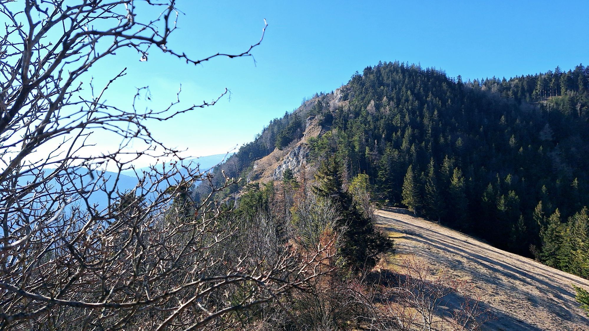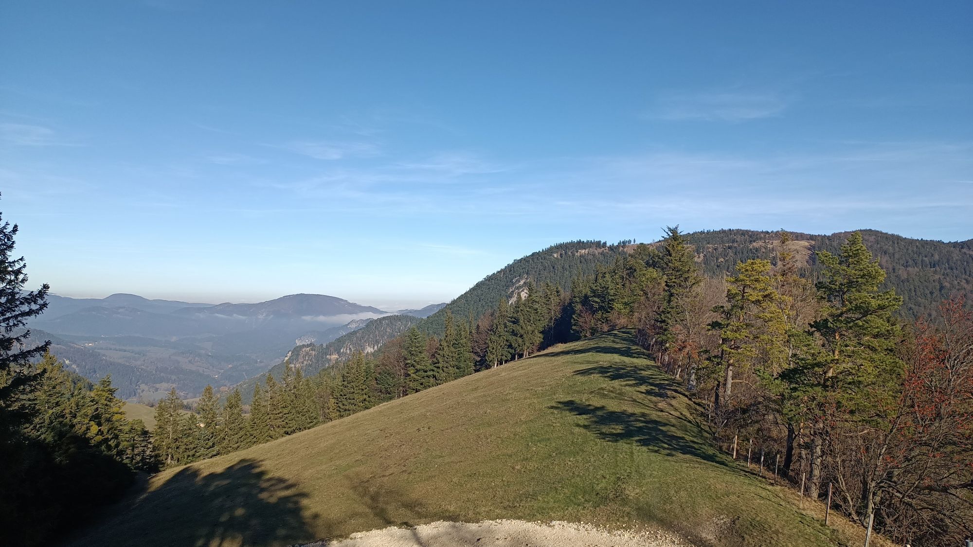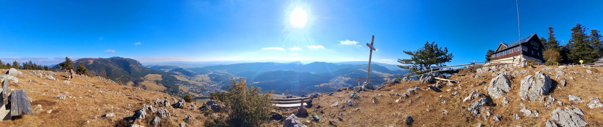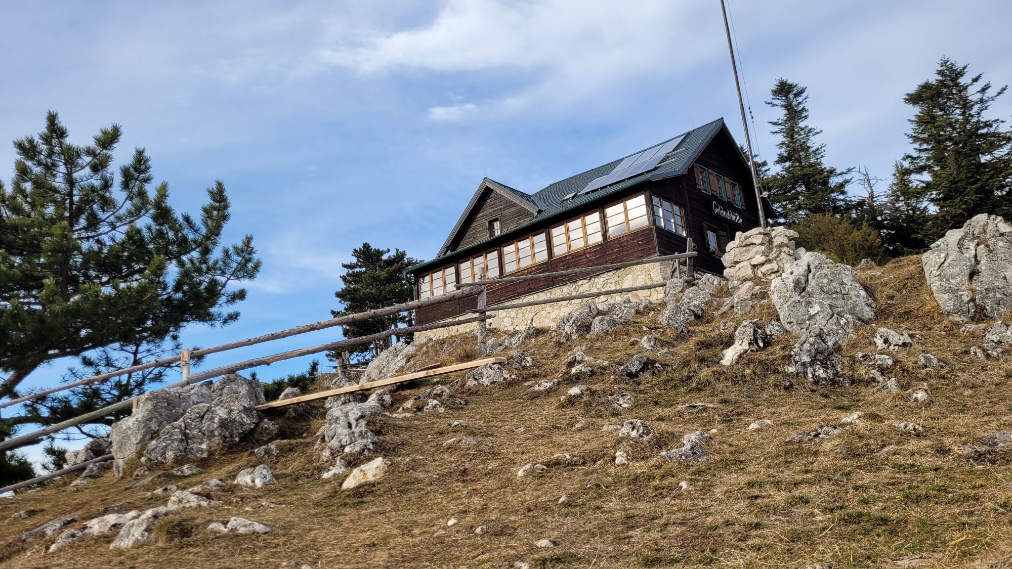The Gelände can also be approached from the north from Miesenbach or from the Hohe Wand via a variant of the North Alpine Trail.