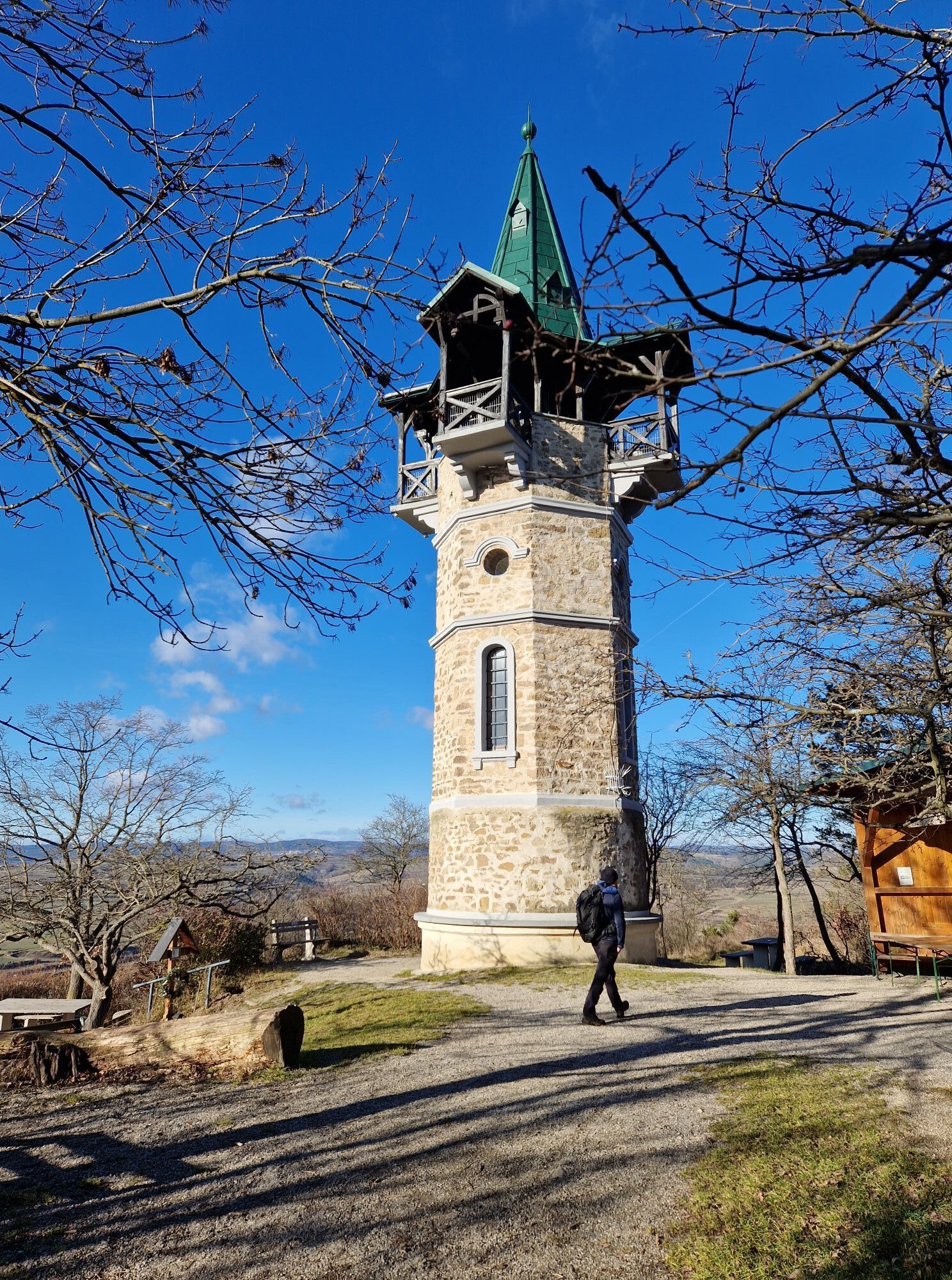 Anfangs steiler durch die Rieden auf den Heiligenstein zum Fasstaubenkreuz hoch und links weiter zur Kamptalwarte.