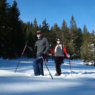 Ausgangspunkt deiner knapp zweistündigen Schneeschuh- bzw. Skitour (kurze Pause inkludiert) beginnt beim Unterstand mit Infotafel beim oberen Parkplatz Predigstuhl hoch über dem Goiserertal. Gute Winterbereifung ist empfehlenswert. Folge gemütlich der gelben Markierung, schon nach ein paar Schritten erreichst du die erste Abzweigung. Halte dich links, ab hier geht es bereits kurz danach rechts in den verschneiten Winterwald.Nach einem einfachen Anstieg erreichst du die Forststraße. Nun folge immer der Markierung. Die Tour führt jetzt mit einem mäßig leichten 20 minütigen Anstieg durch den Wald immer entlang der Forststraße.Hier passierst du an linker Hand die Stelle mit den Wegmarkierungen für den im Sommer beliebten Aufstieg Richtung Predigstuhl und Leadership Klettersteig. Weiter geht es um die 15 Minuten immer geradeaus. Erlebe dabei die Winterlandschaft im eigenen Tempo unterhalb des Hausberges von Goisern. Passiere an rechter Hand das unverwechselbare Obermoos bis zur nächsten Kurve.Die gelben Markierungen führen dich weitere 15 Minuten leicht ansteigend in Kürze zum oberen Teil der Rossmoosalm. Raus aus dem Wald kommend lockt nun auf der Anhöhe der gigantische Blick über das verschneite Almengebiet und der tolle Blick zum „König Dachstein“ und den Bergen des Inneren Salzkammergutes und des Ausseerlandes. Hier kannst du eine Pause einlegen, inne halten, den Alltag kurz mal vergessen und die Goiserer Bergluft intensiv und bewusst genießen. Nun schmiegt sich die Tour leicht abwärts vorbei über den Sommerweg durch Wald und Lichtungen in ca. 20 Minuten zurück zum Ausgangspunkt - mit den Tourenskiern bist du ein wenig schneller..