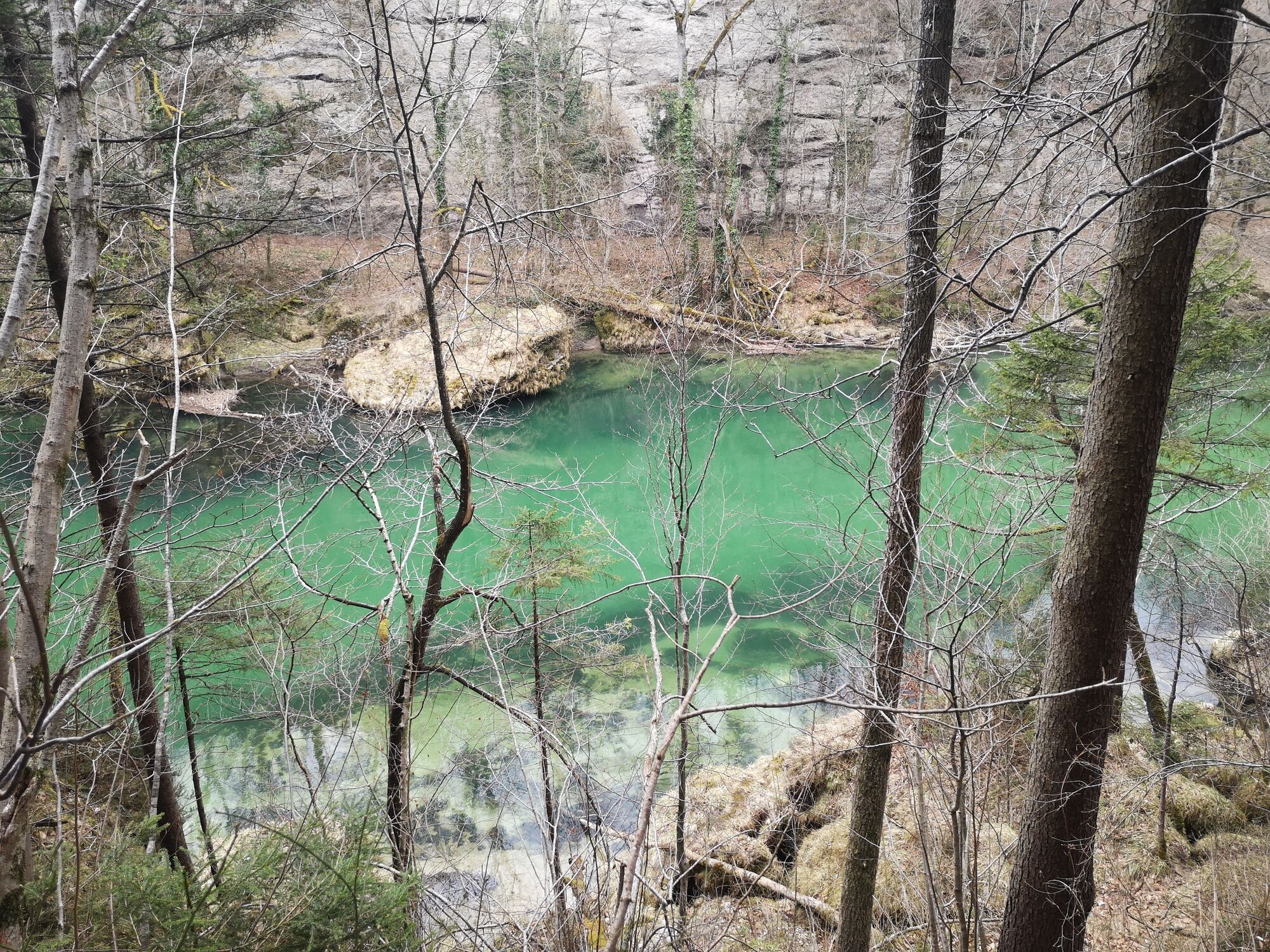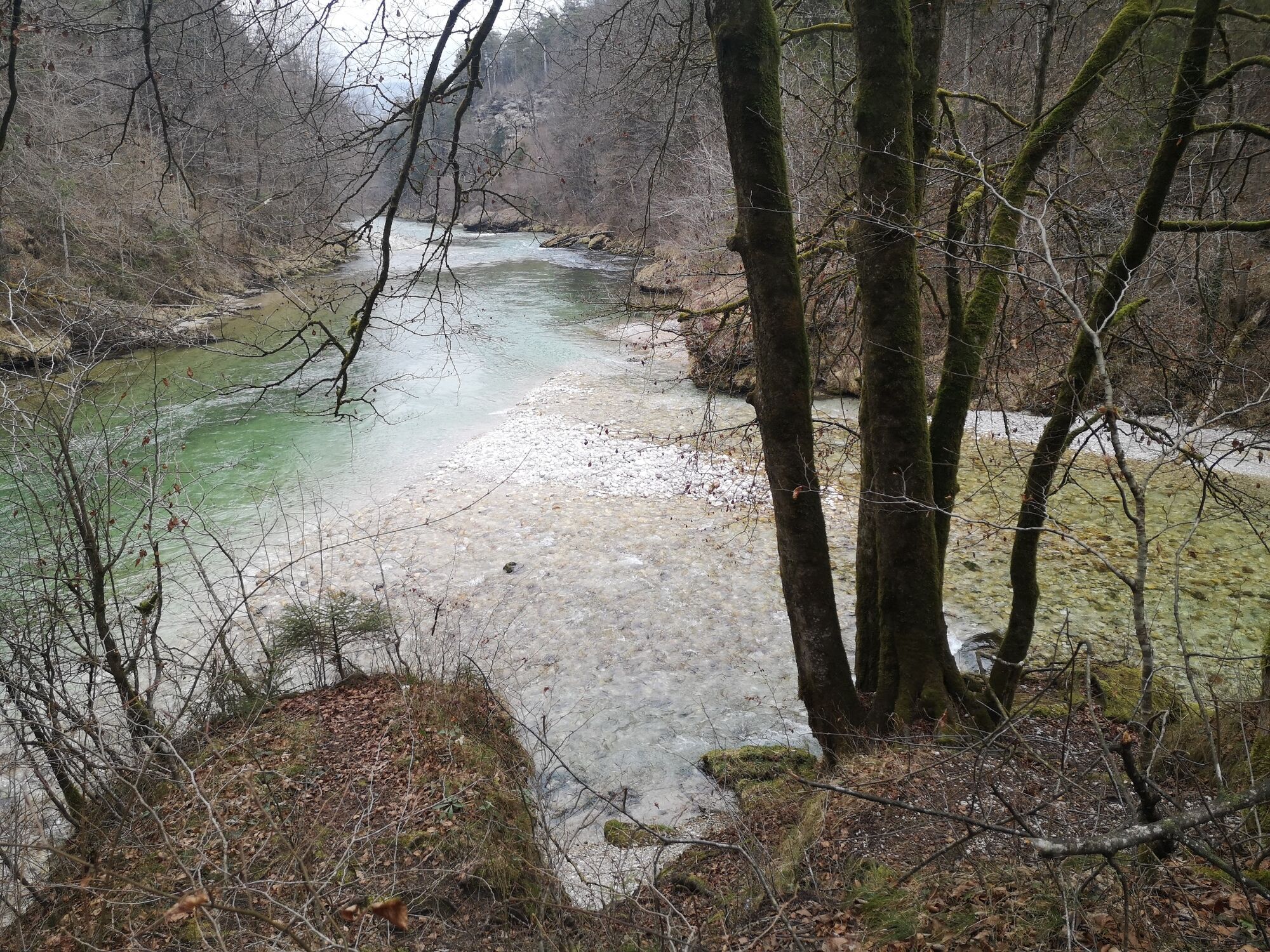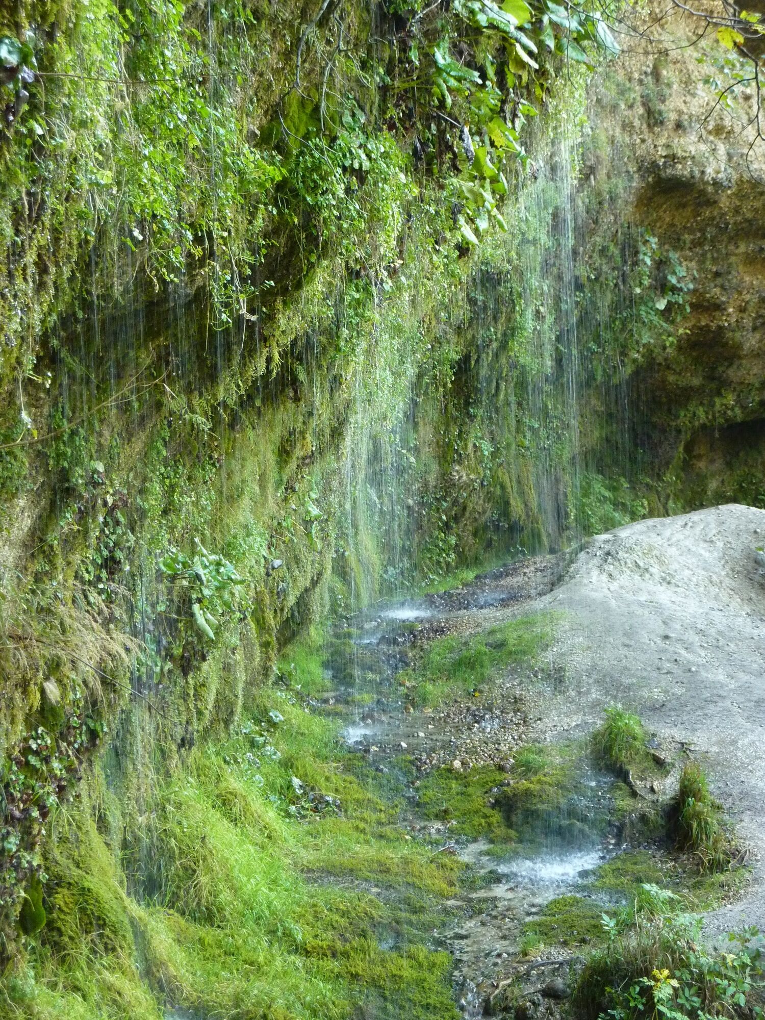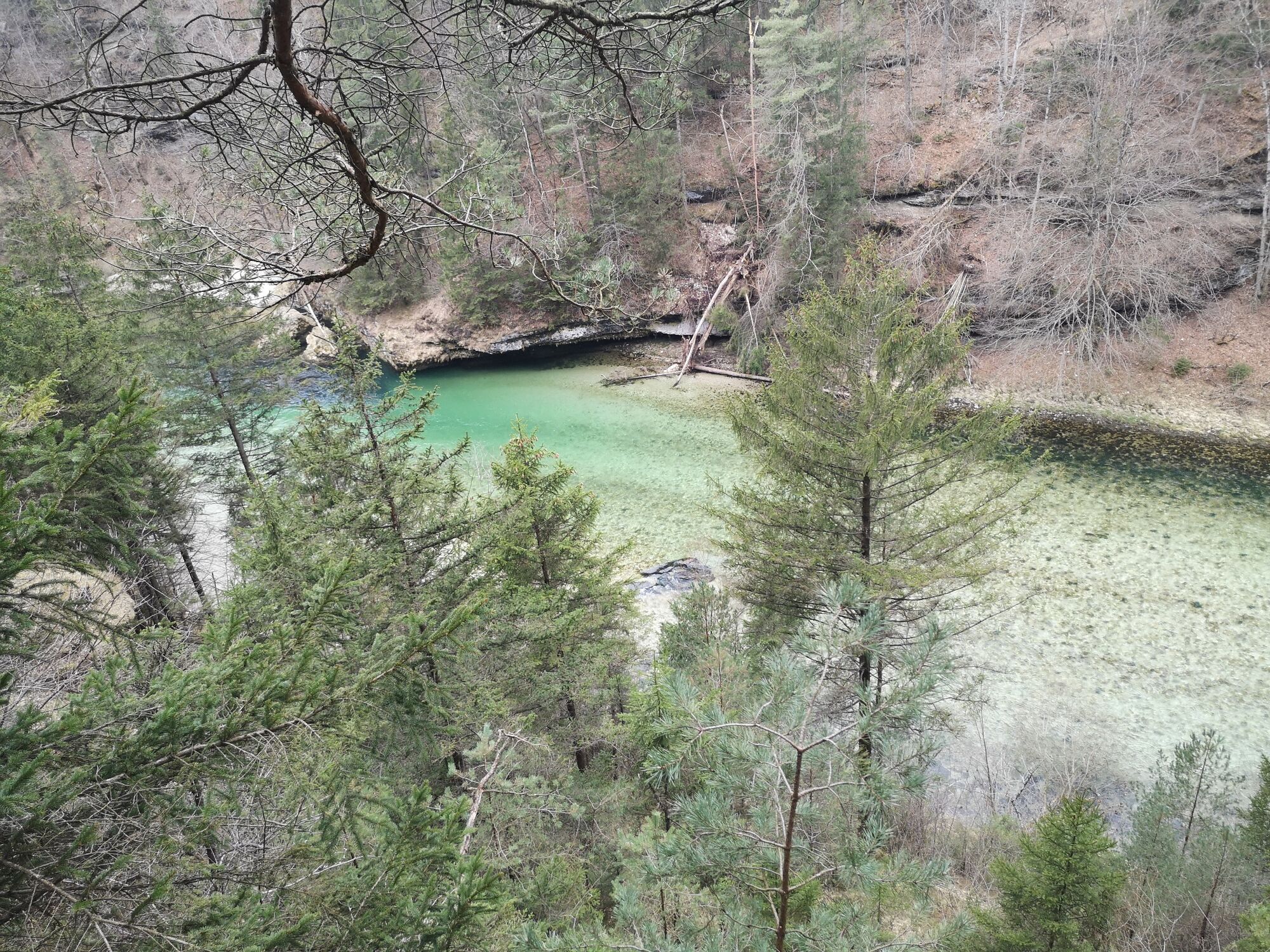 Then simply follow the signs "Rinnende" Mauer". Soon you come to a hiking trail that runs directly under the car bridge. The quite rooty path leads along the Steyr up and down again and again and offers wonderful views of the partly turquoise shimmering Steyr. After 2.5 km you come to a small wooden bridge where the crooked Steyrling flows into the larger Steyr river. After about 4 km there is a junction where you can turn left down to the Rinnenden Mauer or continue on the Salzsteigweg. It is a short but steep descent to the Rinnenden Mauer to the river, until you are faced with a natural phenomenon. Water emerges from a so-called eaves source over a length of 50 meters like a fine curtain of water from the rock. Especially after rainy days, the natural spectacle can be observed very well.