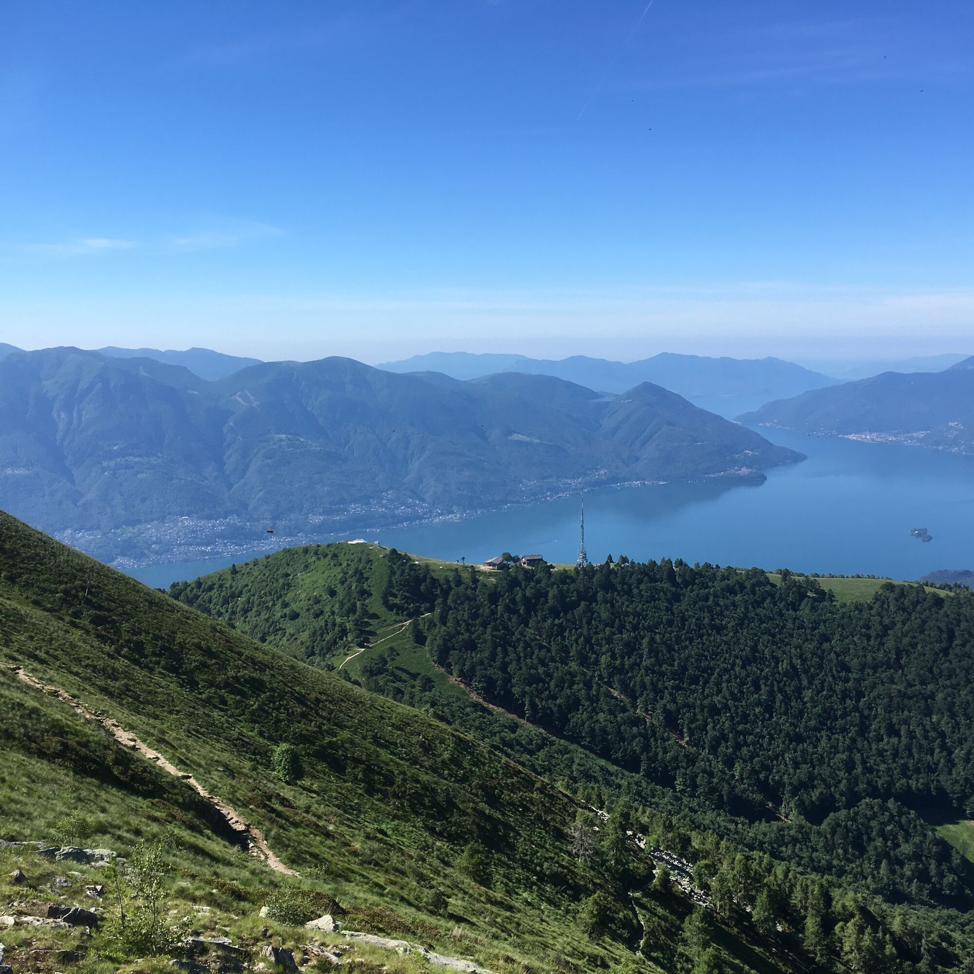 One could in principle start right from the shore of Lake Maggiore at Locarno, at barely 200 meters altitude. Yet a funicular, an aerial cableway, and a chairlift spare us the first 1500 meters of ascent....