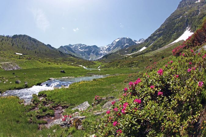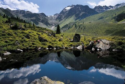 From the Mure car park in the village center of Umhausen, the route leads leisurely through the Neudorf district. After crossing the Fundus bridge, follow the wide forest road to the Fundustal (left) and Leierstal (right) crossroads. From there, take the path to the left towards Fundustal, past the Vorderer Fundusalm (not managed) and then on to the Hintere Fundusalm. A little further lies the beautiful Fundus lake. The Fundustal in the eastern Ötztal Alps is secluded and deserted high above Umhausen. A hike up to the Hintere Fundusalm is worthwhile not only because of the Köfler Waalweg but also because the solitude and beauty of nature here can be wonderfully enjoyed. Green meadows and the crystal-clear Fundus lake invite you to linger on a hot summer day. Those who wish can also visit the beautiful Fundus lake or continue hiking to the Frischmann hut via the Köfler Waalweg.