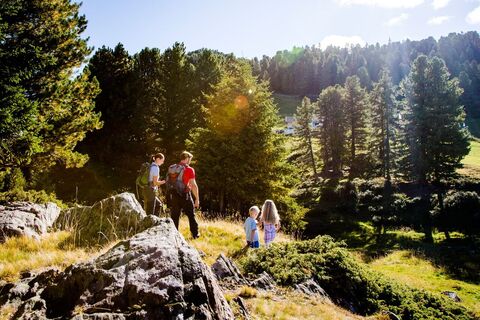 The starting point is the parking lot at the beginning of the village of Ochsengarten. You stroll through the village and after the Bergland inn, turn right onto Bienenweg. Through the forest, it goes leisurely downstream through the woods. You keep heading towards Kühtai until the path leads into the paved federal road. Here you have to walk a few meters on the road and continue over the bridge. On the other side, the path leads left of the river up the steeply rising Höllwiesenweg to Mareil.