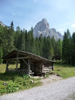 Vom Parkplatz wandern wir nur wenige Schritte bis zur entzückend über einem Abhang gelegenen Lienzer Dolomitenhütte mit herrlichem Blick auf die umgrenzenden Berge. Wir wandern weiter auf einem Almweg,...