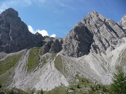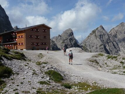 Vom Parkplatz wandern wir nur wenige Schritte bis zur entzückend über einem Abhang gelegenen Lienzer Dolomitenhütte mit herrlichem Blick auf die umgrenzenden Berge. Wir wandern weiter auf einem Almweg, vorbei an Kühen und Schafen bis zur Kapelle, wo wir eine kleine Rast halten wollen. Weiter geht es dann den schottrigen Almweg entlang, es gibt auch teilweise Abkürzungen bis wir die fantastisch gelegene Karlsbader Hütte erblicken. Umgeben von schroffen Kalkbergen - wir befinden uns in einem bekannten Klettergebiet- lädt der blau schimmernde Laserzsee zu einer Rundwanderung ein, bevor wir uns dann den kulinarischen Köstlichkeiten in der Hütte widmen, wie z. B. die Spinatkäsenocken.